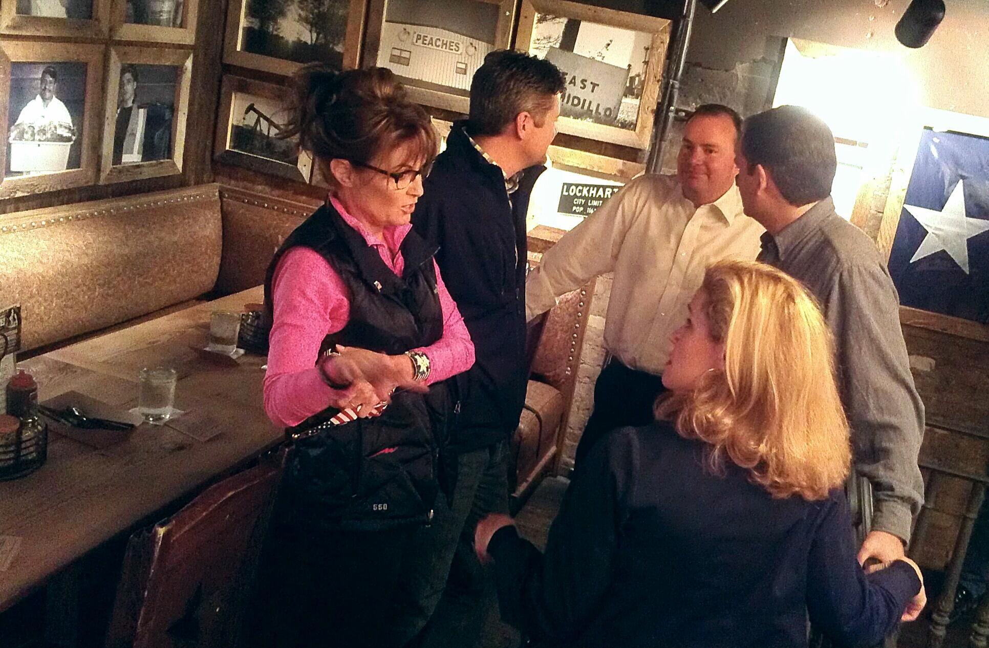 | Here we see Palin, Lee, and Cruz soaking up the media attention after hijacking the protest. |